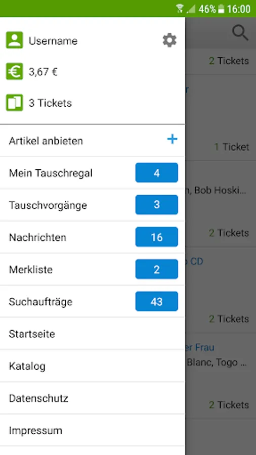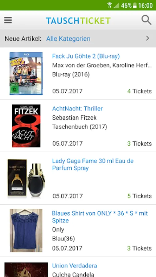 Ticket Exchange allows its users to exchange goods through a virtual currency (called "tickets"). In stark contrast to auctions or classified here flows no money within the members. If you have collected enough tickets, there is a free choice in total merchandise catalog.