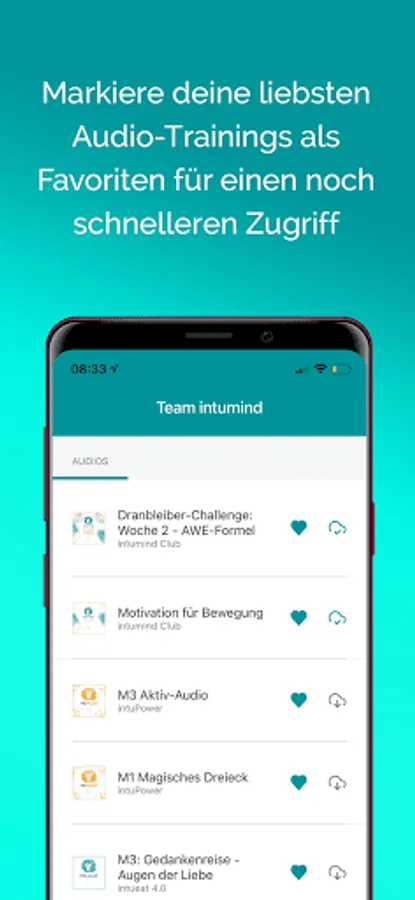 Use the new intumind audio app to play the mental audio training of the intumind online courses directly on your smartphone. You can mark favorites and save the audio training sessions offline if you are on the go without the internet.