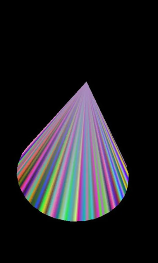 Testing OpenGL Hardware Acceleration with a spinning cone, changing its color.