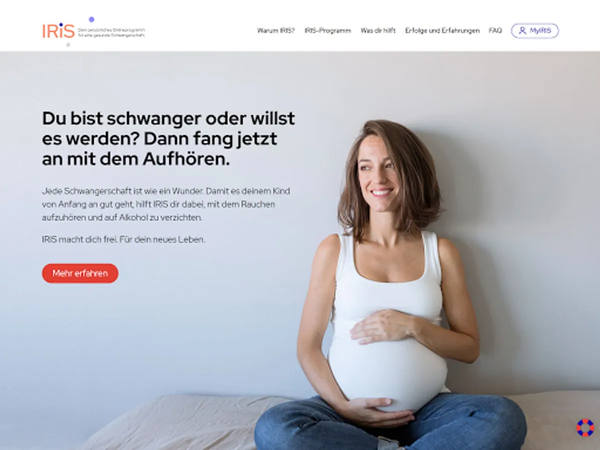 Are you pregnant and want to quit smoking and alcohol? With three online programs, IRIS offers you exactly the help you need. The right IRIS program MyIRIS is tailored to your personal consumption habits. Regardless of whether you want to quit smoking or no longer drink alcohol, MyIRIS accompanies you through all phases: from the first step to a new attitude towards life.