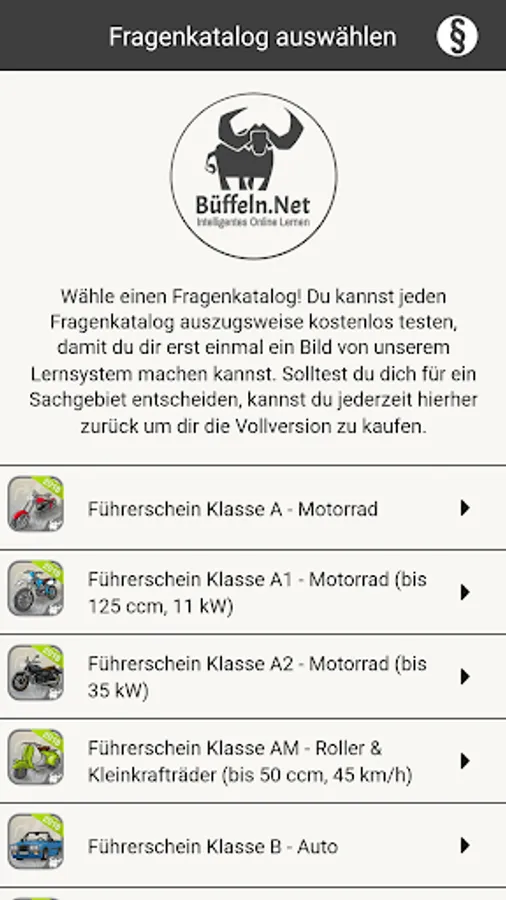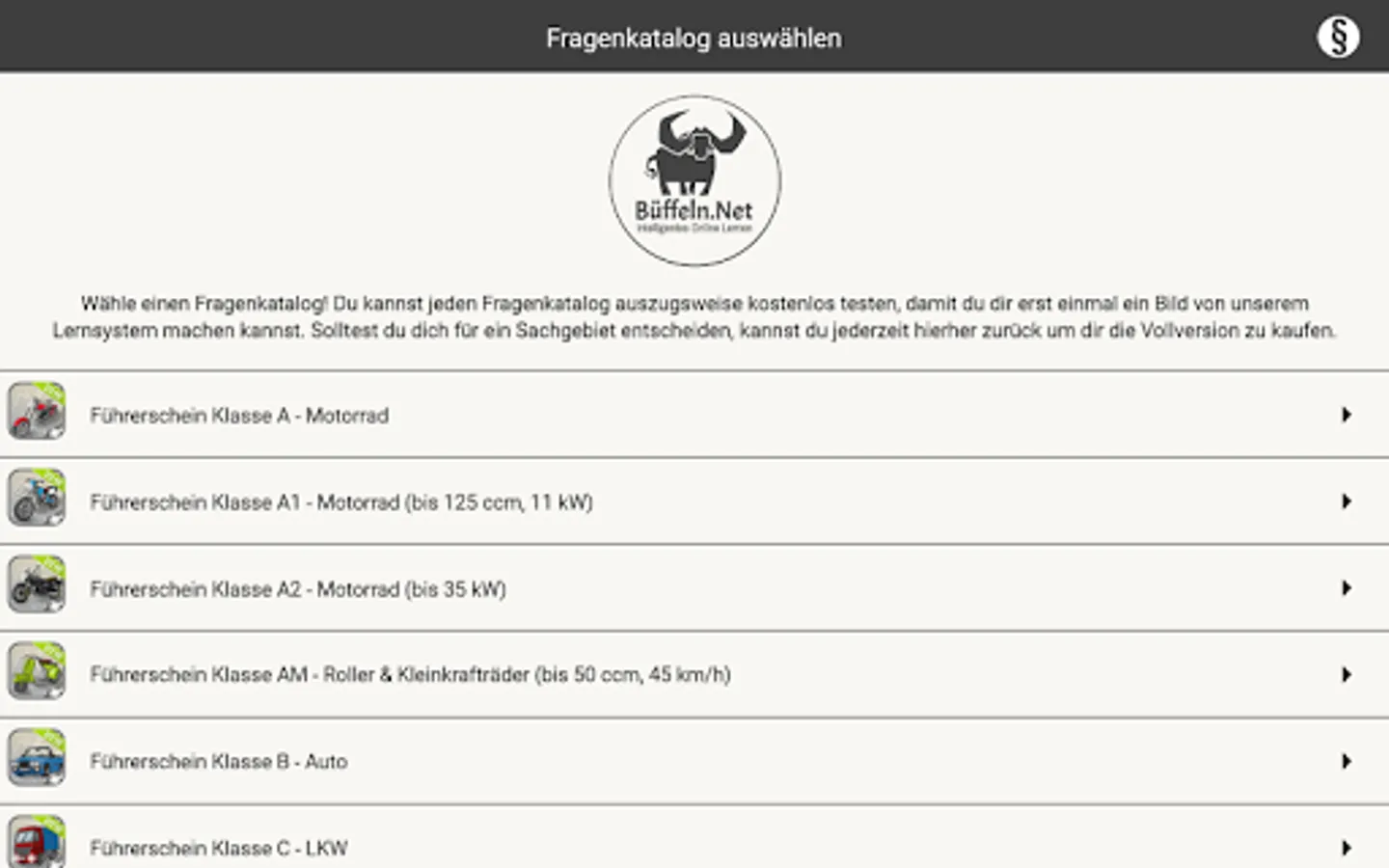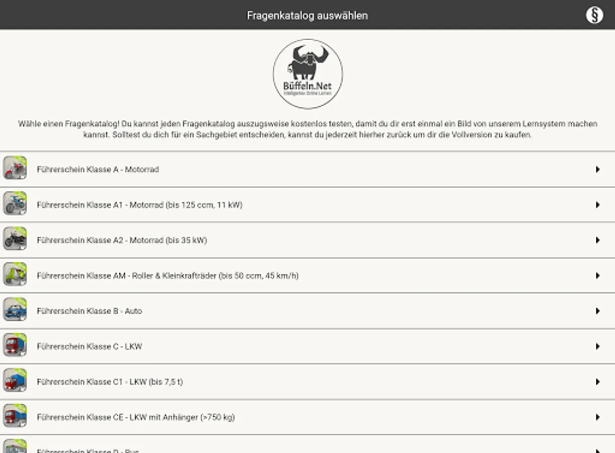 The ingenious learning system for driving licenses from www.Buffeln.Net.