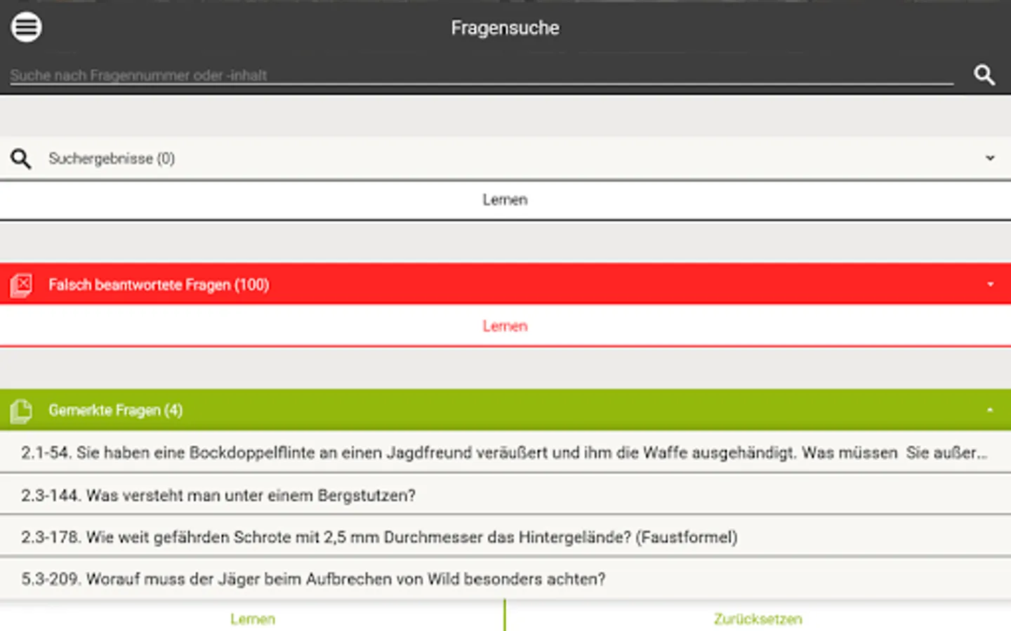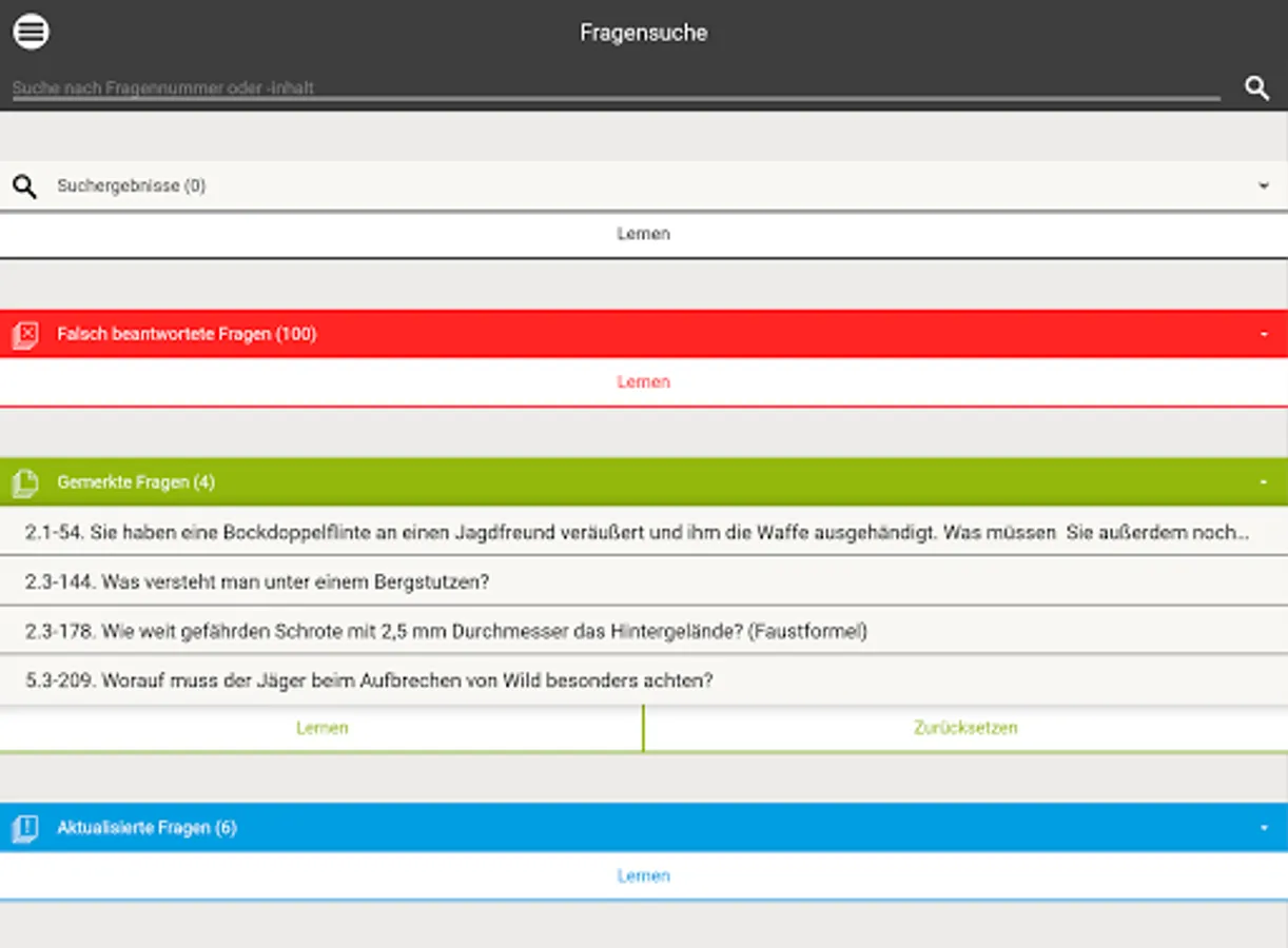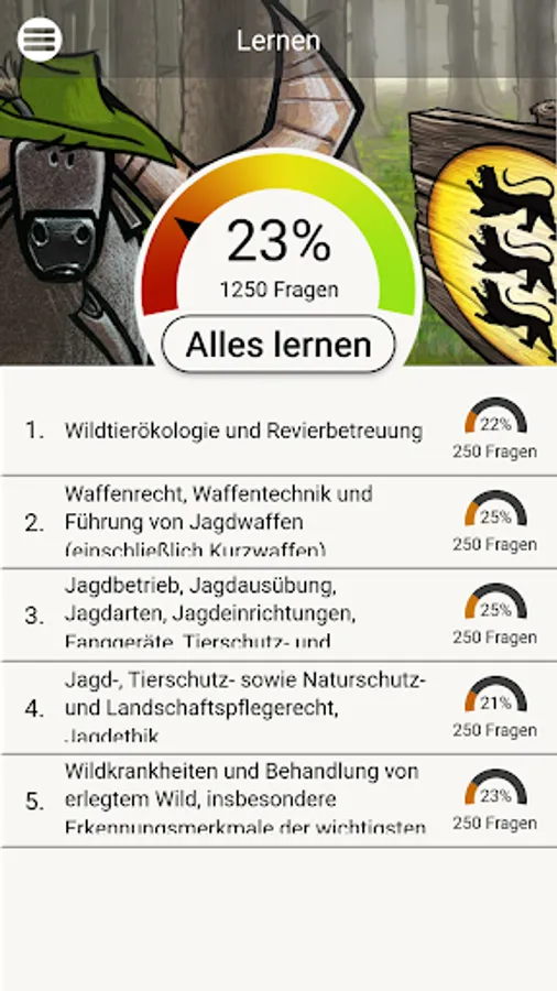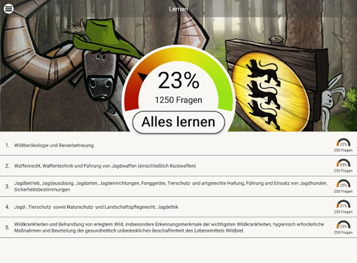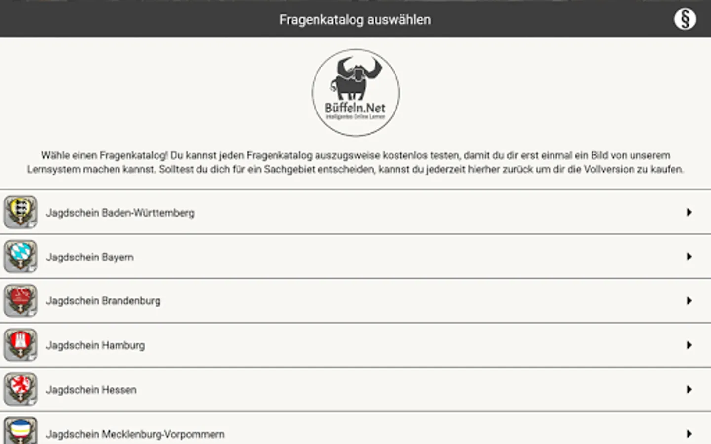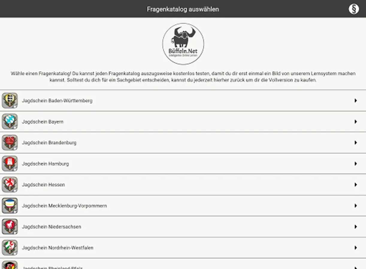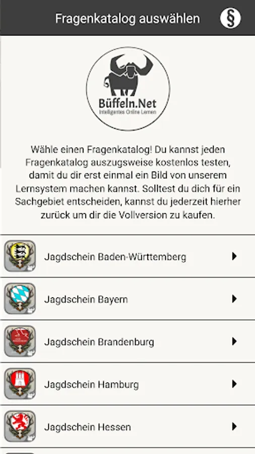 The ingenious learning system from www.Büffeln.Net for the hunting license of the respective federal state.