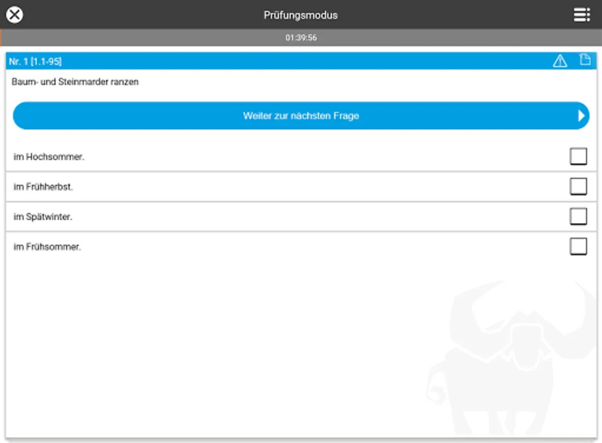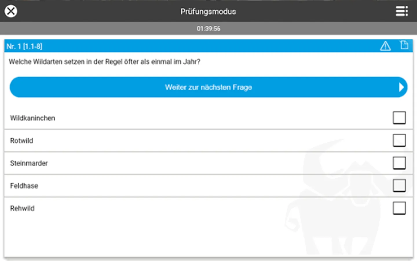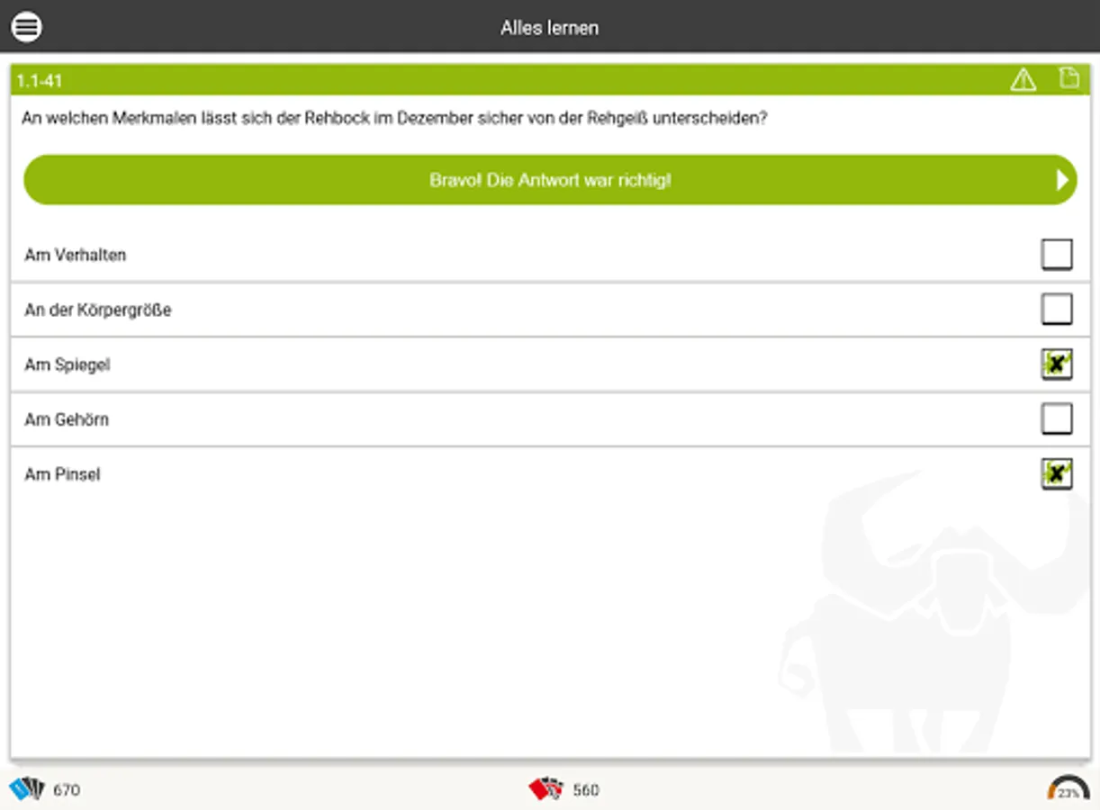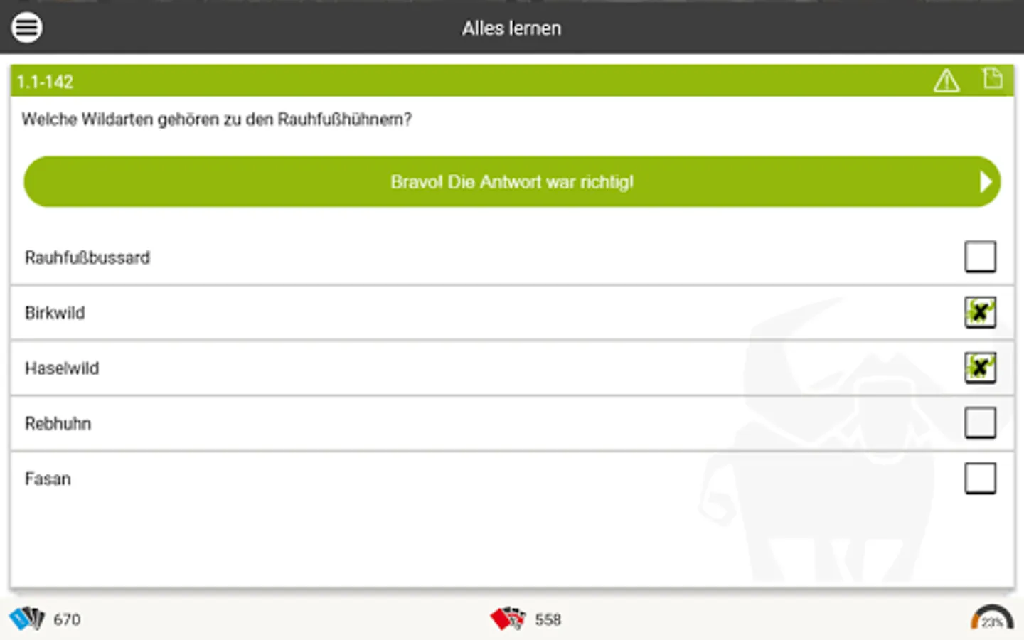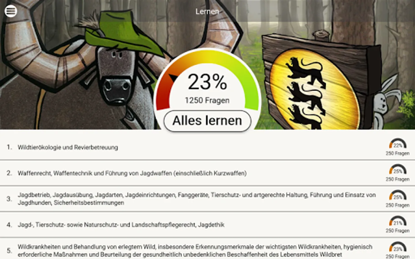 The ingenious learning system from www.Büffeln.Net for the hunting license of the respective federal state.
