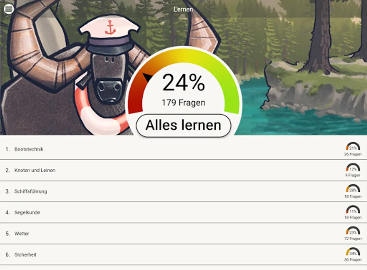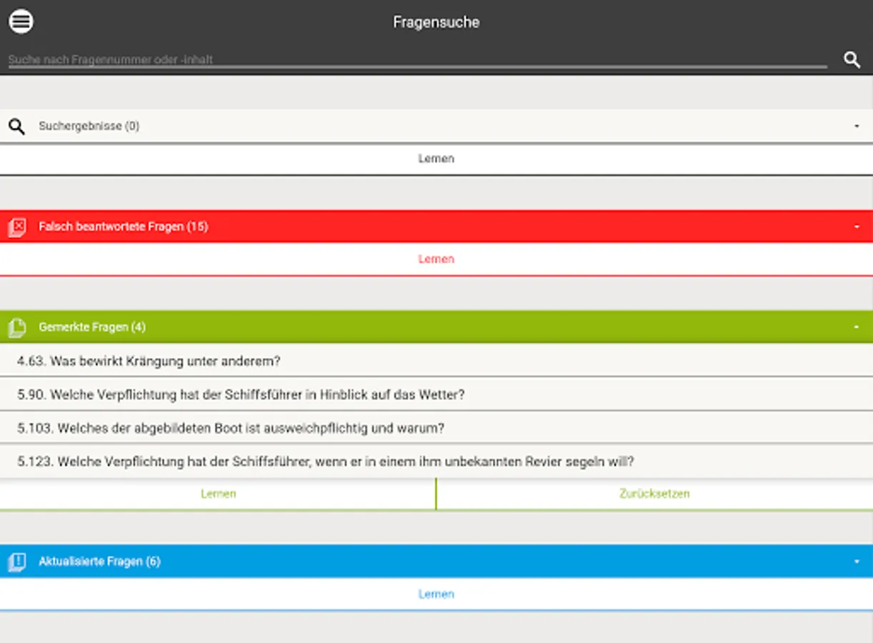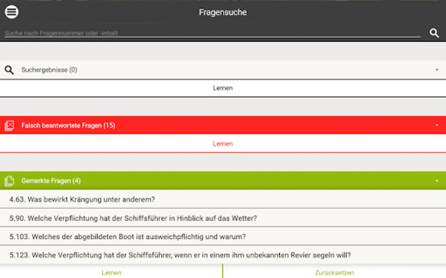 With this app the questions for the ride areas one can - modules, pyrotechnics and sailing A (single ticket) are learned 4.