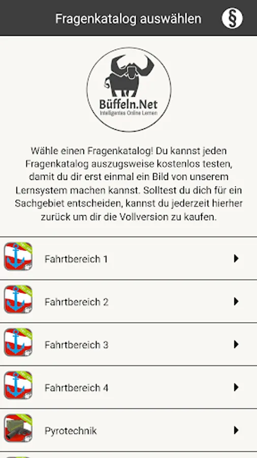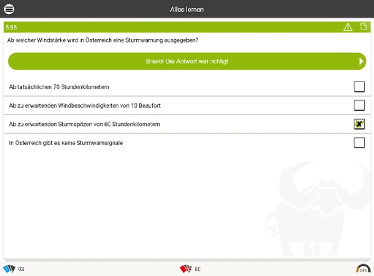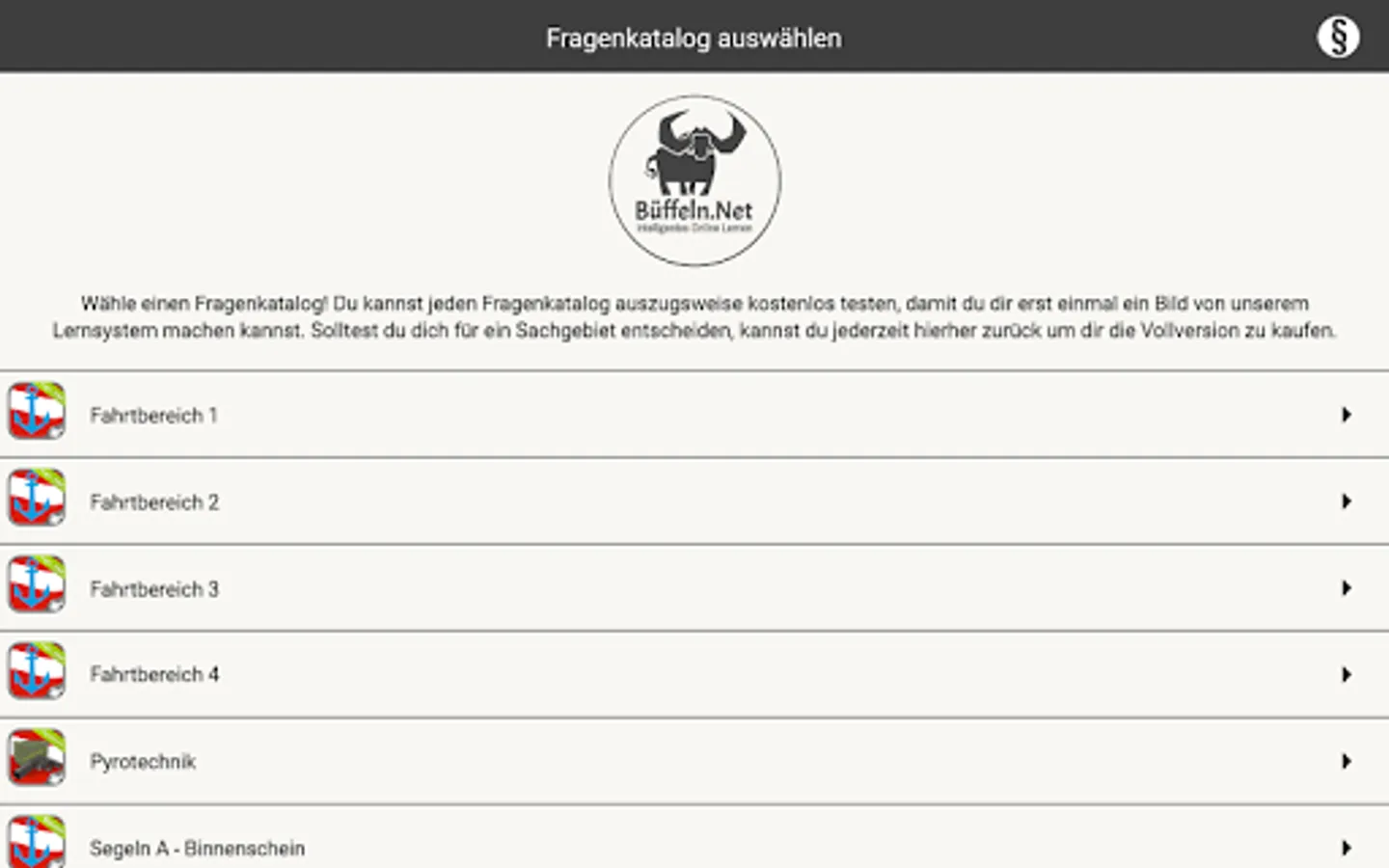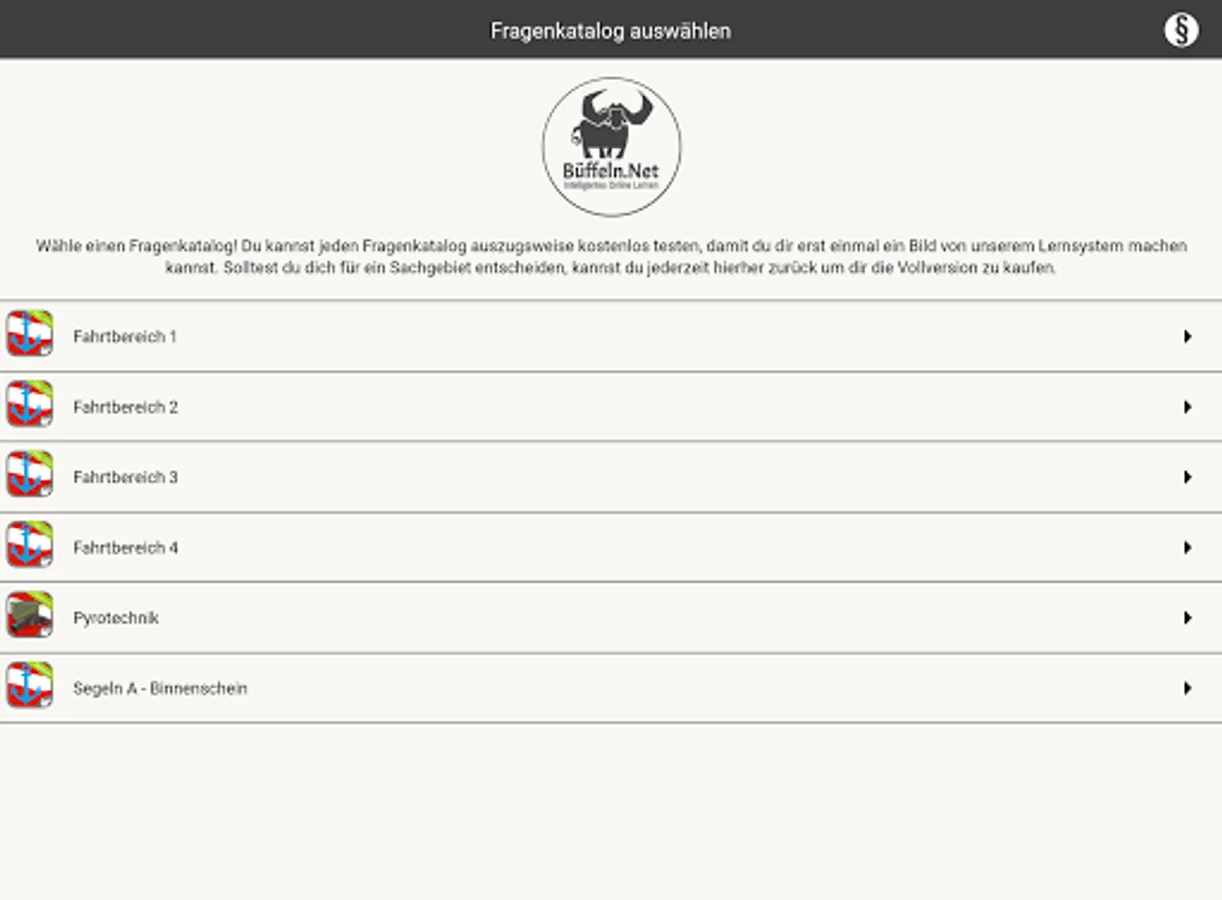 With this app the questions for the ride areas one can - modules, pyrotechnics and sailing A (single ticket) are learned 4.