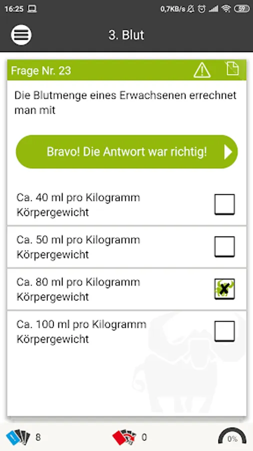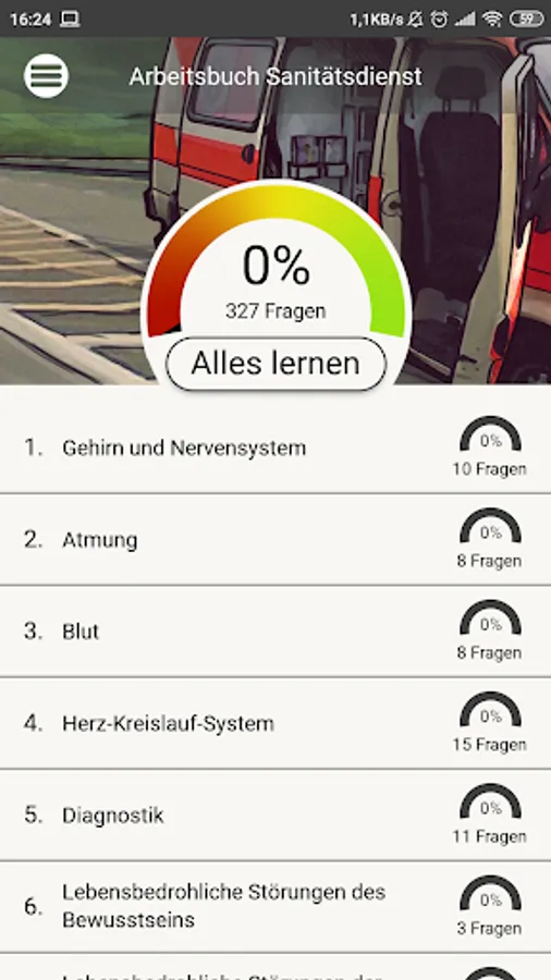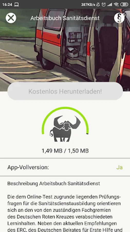 The examination questions for medical service training on which the app is based are based on the learning content approved by the relevant specialist bodies of the German Red Cross. In addition to the current recommendations of the ERC, the German Advisory Board for First Aid and Resuscitation and the Federal First Aid Working Group (BAGEH) of the aid organizations, the special needs of the employers' liability insurance association were also taken into account.