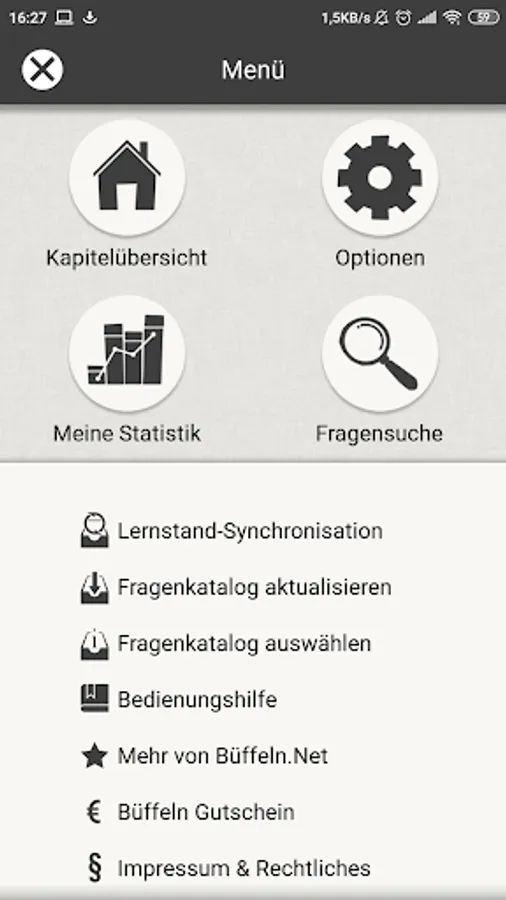 • Synchronize your learning success online with www.Büffeln.Net. This gives you the opportunity to study for your exam with multiple devices and take your learning progress with you wherever you go