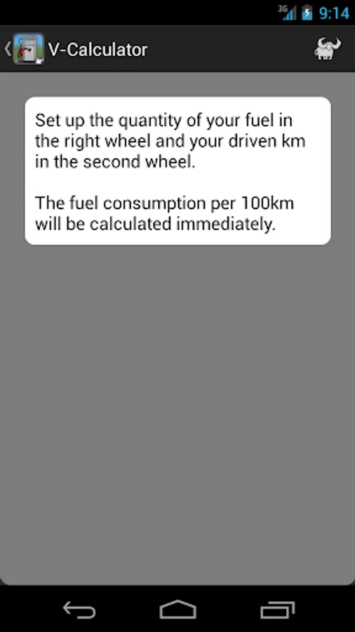 After entering the amount of fuel and the distance, the app calculates the fuel consumption per 100km, immediately.