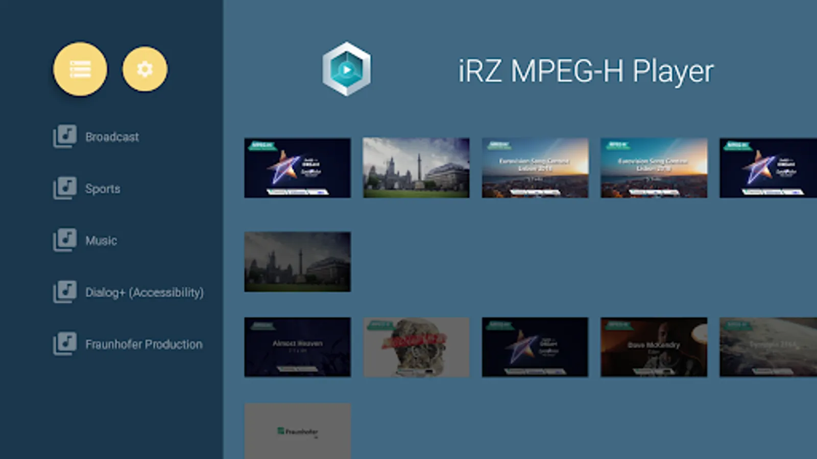 The iRZ MPEG-H Player App also provides access to MPEG-H Audio demo content that lets you experience the scope of its creative opportunities.