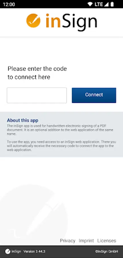 The inSign app is used for the handwritten electronic signing of PDF documents.