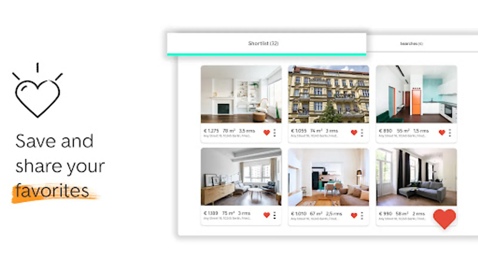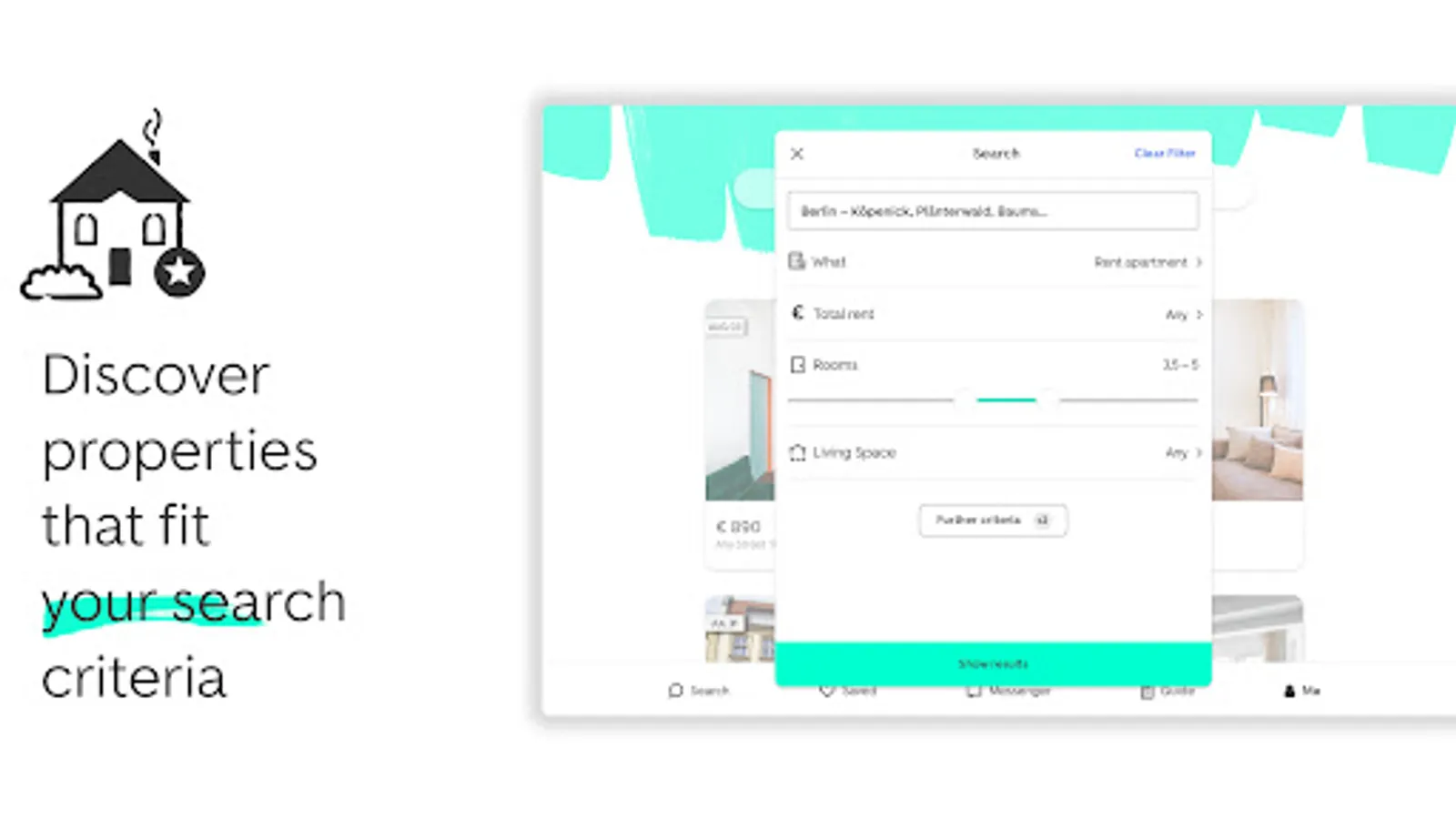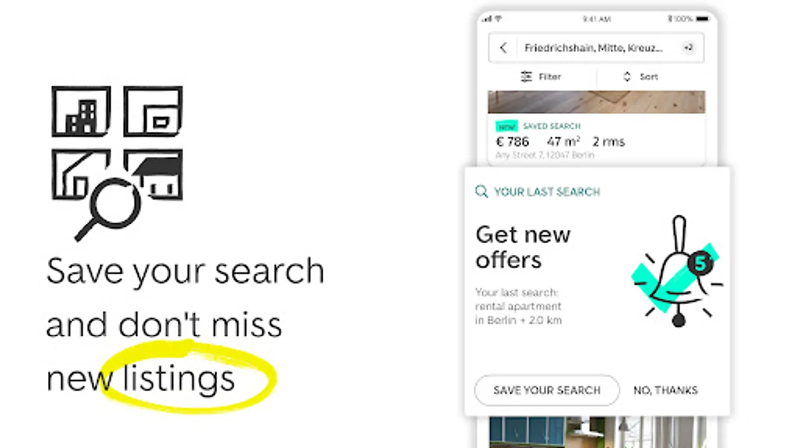 We make sure you don't miss anything. Just save your search and as soon as a new property matching your search criteria is published, you will be informed via push notifications. This way you can react quickly and apply right in the app.