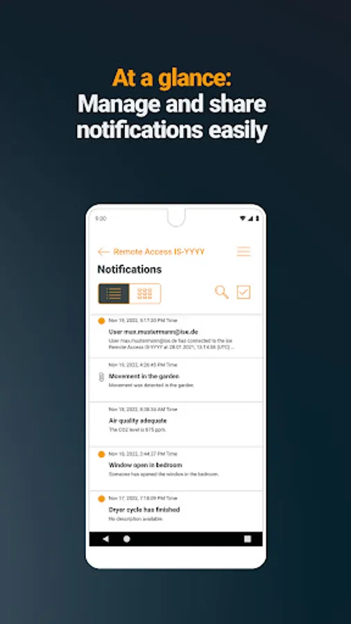 Depending on your individual configuration, you will receive messages like: “Someone has opened a window”, “someone has rung the doorbell” or “the washing machine cycle has finished”.