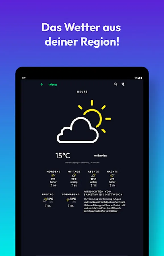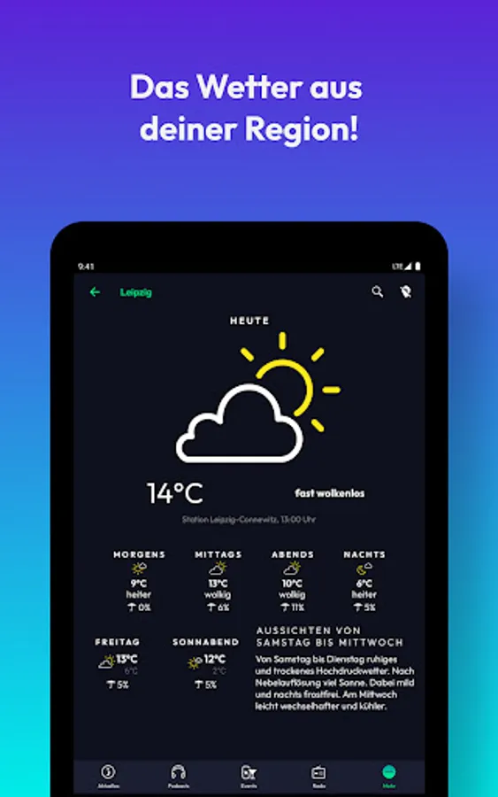 • Weather: We offer you a location-based weather forecast for Saxony, Saxony-Anhalt and Thuringia.