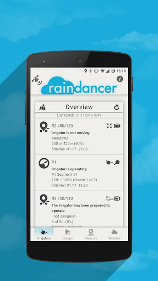 Never miss a status update of one of your irrigation devices. Keep track on their current task, battery state & position.