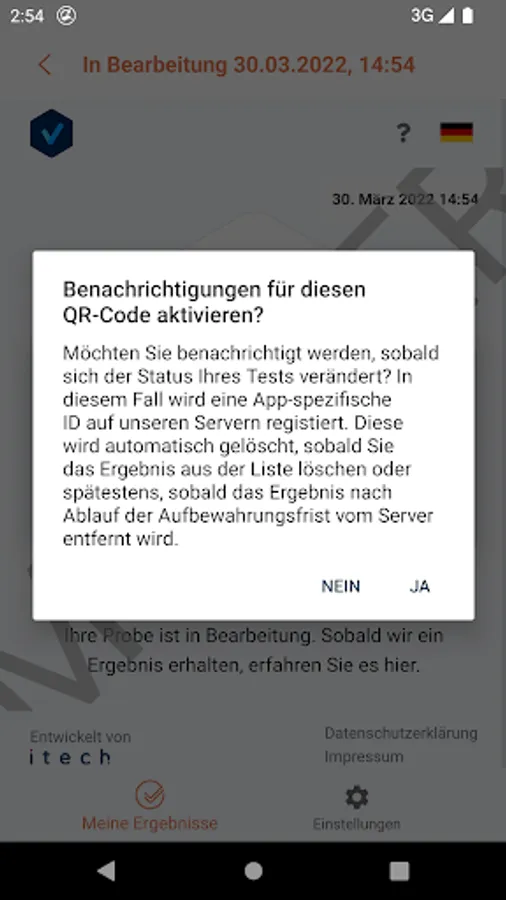 The test persons can then simply scan the QR code with this app to find out about the progress of their examinations, or enter the UUID manually at www.mein-testergebnis.de.