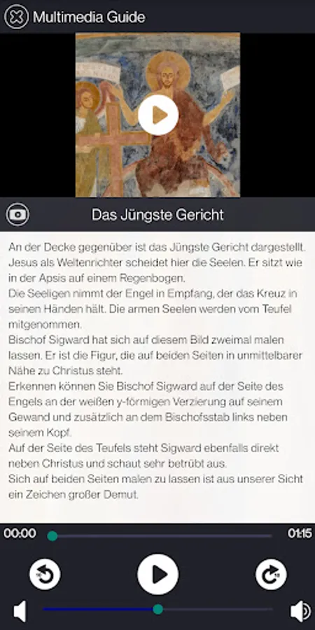 The special thing about this app is that all visitors can move freely on the site and in the church: content related to the location is offered, which can be selectively perceived - as video, audio or text. The entire content is kept ready for offline use. The use of Bluetooth is necessary.