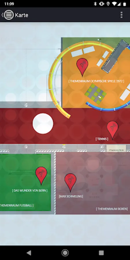 The app is based on the IBeacon technology. An IBeacon is a small Bluetooth radio transmitter that automatically connects to the smartphone. In the exhibition there are a total of 60 IBeacons, if you come close to an IBeacon, this triggers independently new content in the app. All locations of the IBeacons are recorded on an overview map, but striking stickers also draw attention to the individual stations.