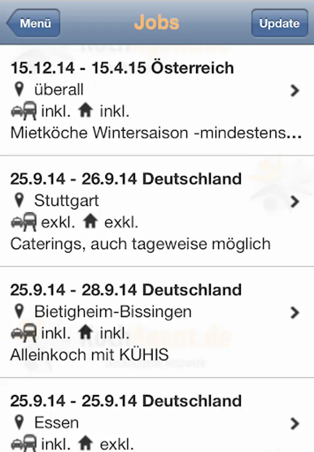 The cooking Agent app informs you anywhere in the world via new chef jobs. The integrated push function you will not miss a good deal more.