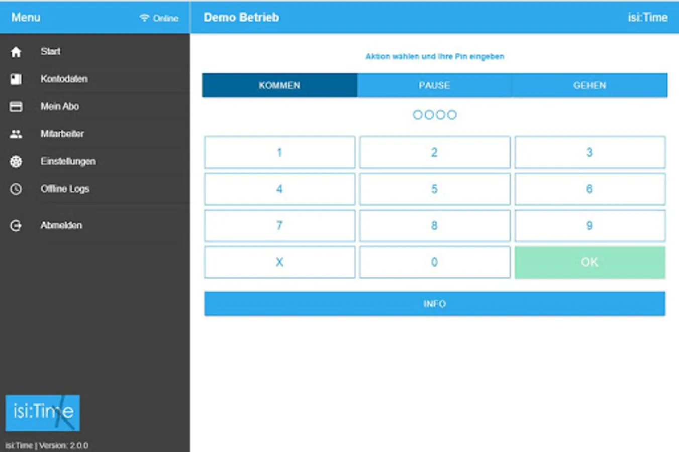 - Register as an Administrator (HR Administrator) and place the tablet in an accessible place for all employees. Each employee receives an automatically generated PIN with which he / she logs on/out to the tablet and in this manner records his / her worktime - the rest is done automatically in the background.