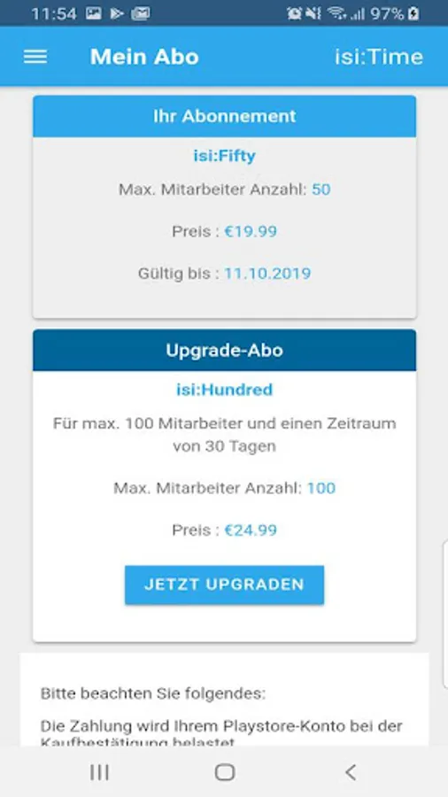 First 30 days are fully functional trial time, after that you can continue isi:Time starting at just 9,95€/month (based on your number of employees). Other costs are not incurred.