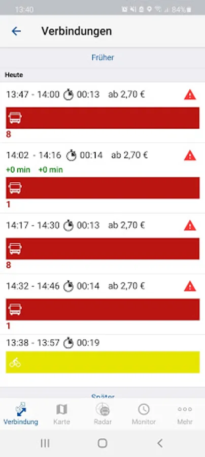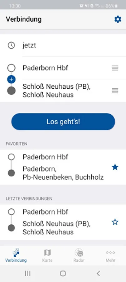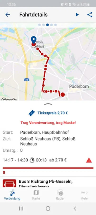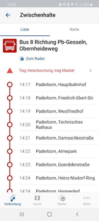 The Kompass app can be used barrier-free by blind and visually impaired passengers via the device's own operating aids (reading function) and enables this group of people to use local public transport independently.