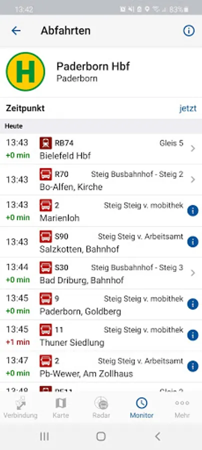 - Information on stops, departure times, changes, delays or disruptions in real time