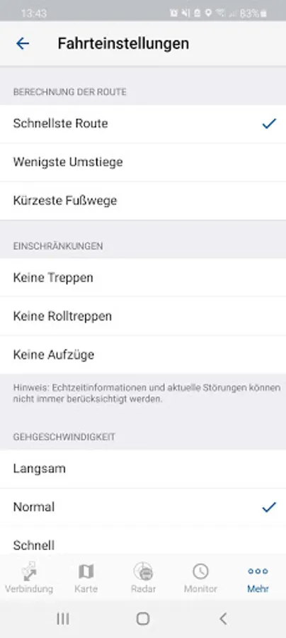 In addition, based on the connection information, it offers a continuous travel companion from door to door with an acoustic or tactile navigation aid on footpaths.
