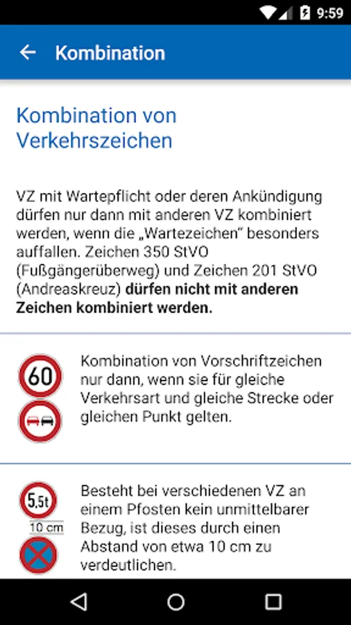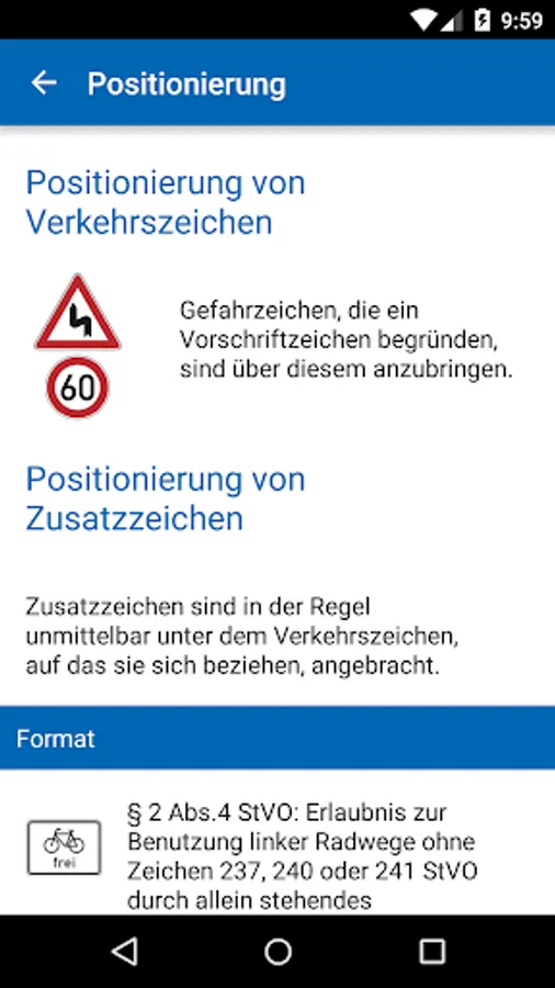 This app corresponds to the traffic sign information ( "The foresters from the forest of signs"), 15th Edition, June 2017. It includes the 1992 amortized agreed with BMVI and BASt interim status in 2014. As in the "Ranger" are additionally contain general information on road signs (sizes, installation, accumulation, combination, positioning, repetition and table 1 of M LV). It is intended for public administrations to facilitate procurement and inventory and to manufacturers to document their current catalogs. It thus represents a more than 90% anticipation of the VzKat 2016 represents. police and regulatory agencies are required to perform presentiments and arrangements according to the VzKat 1992nd