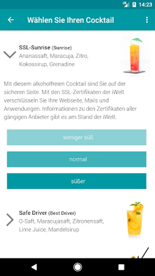 With the free app iWelt you have the opportunity to prepare this within a short time from TenderOne robot. Choose between various non-alcoholic and alcoholic beverages - Shake Cocktail on the smart phone, scan QR code and enjoy the cocktail. The combination of Tender One robot and App was iWelt such as main.IT been in use for some events.