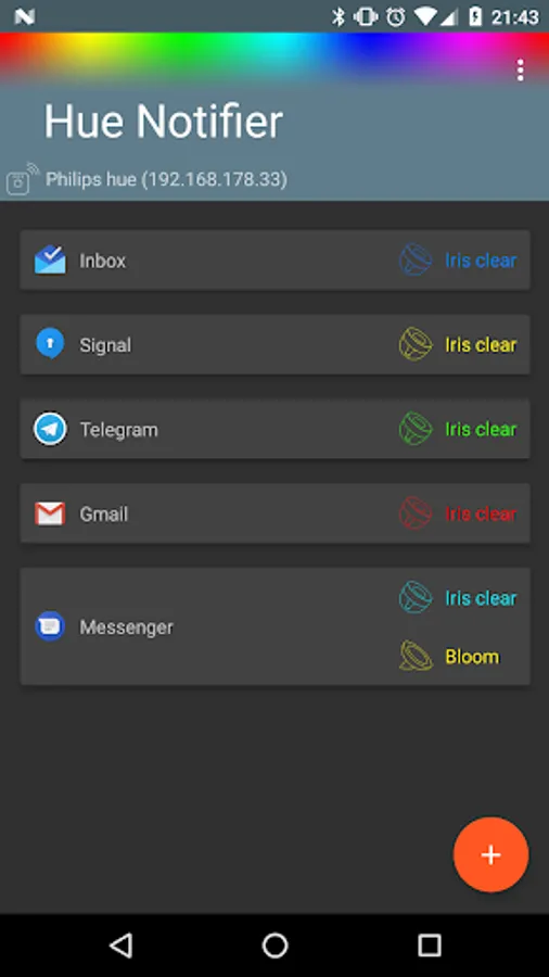 This app lets your Philips hue lights flash in a predefined color, whenever one of the selected apps posts a new notification.