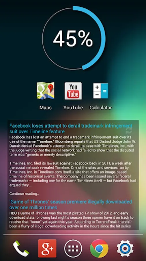 This app is just a customizable, simple widget which displays RSS feeds on your home screen.