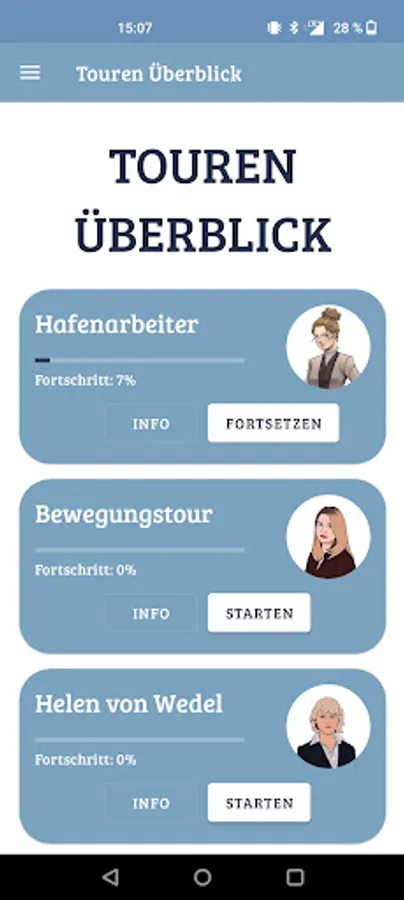 The app is the result of a student project and is currently still in the test phase. The developers therefore ask for feedback, which can be submitted either by email under the menu item Support or via an external questionnaire under the menu item Send feedback.