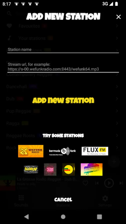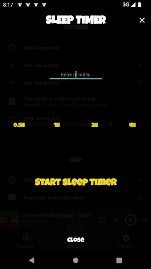 We have a sleep timer to start dreaming with your favourite reggae station and you can copy current track info via click on running tunes.