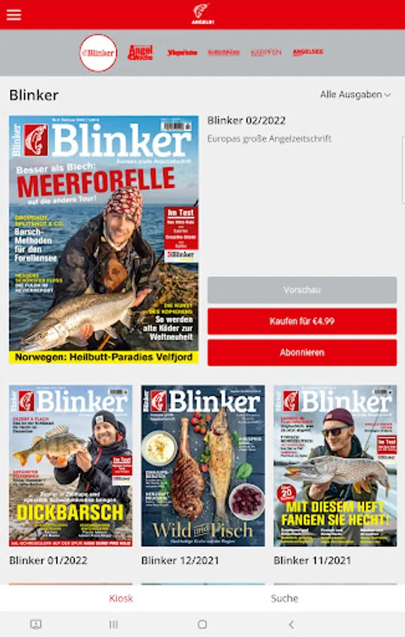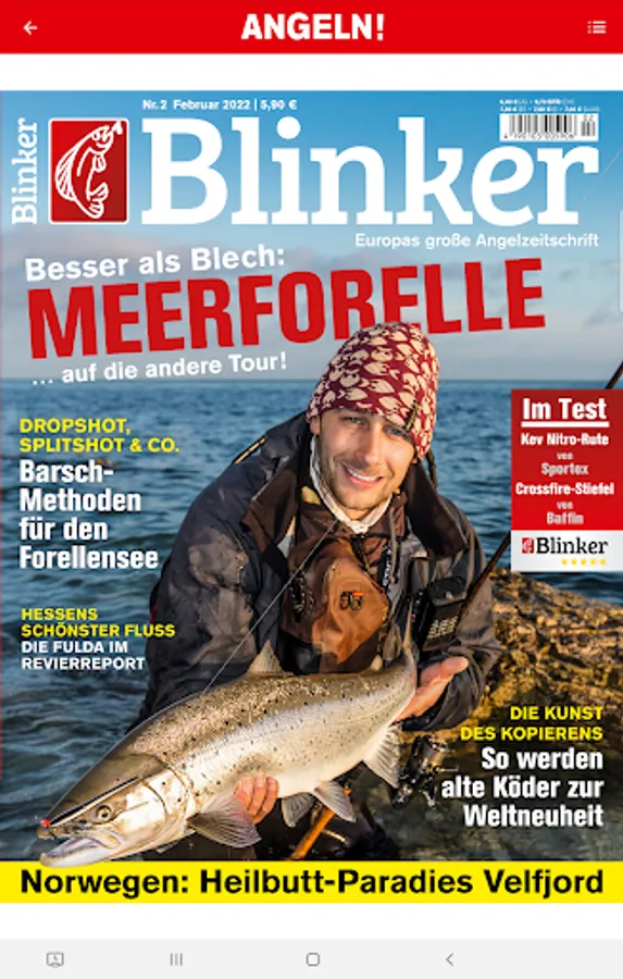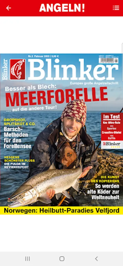 BLINKER is Europe's largest fishing magazine - the guide in the fishing sector thanks to excitingly written articles and a high utility value in fishing practice. Impressive layouts, stories written in a practical manner with impressive photos and the latest device tests are always convincing.