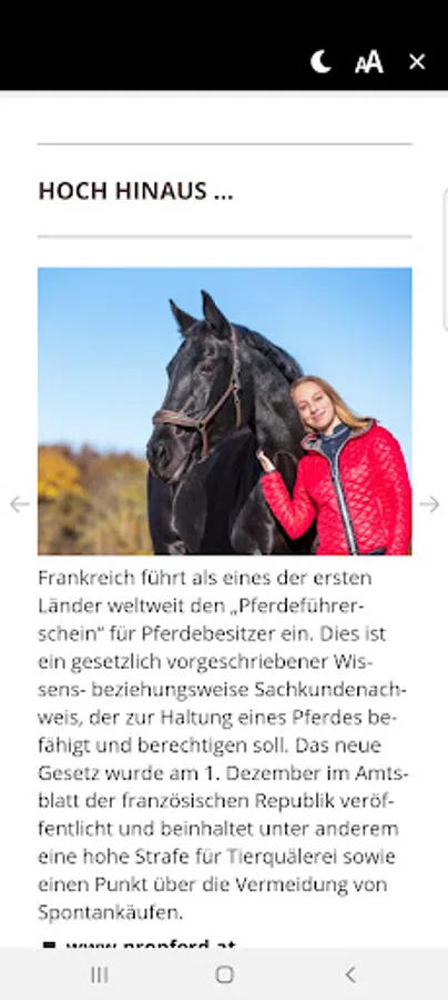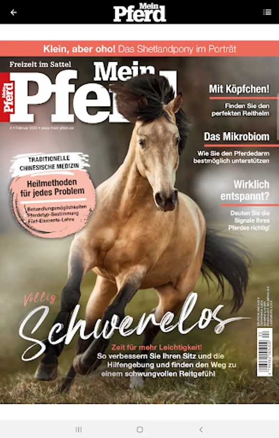 Once a month, Mein Pferd is all about the loveliest hobby in the world: gripping reports and easy-to-understand tips for better riding are the focus of our riding magazine. Features on posture and health as well as equipment tests make My Horse a must-read for all horseback riding enthusiasts. Horsemanship, whether classic, western or in the gaited horse scene is our creed. The well-being of the horse and the harmonious relationship between horse and rider is our goal.