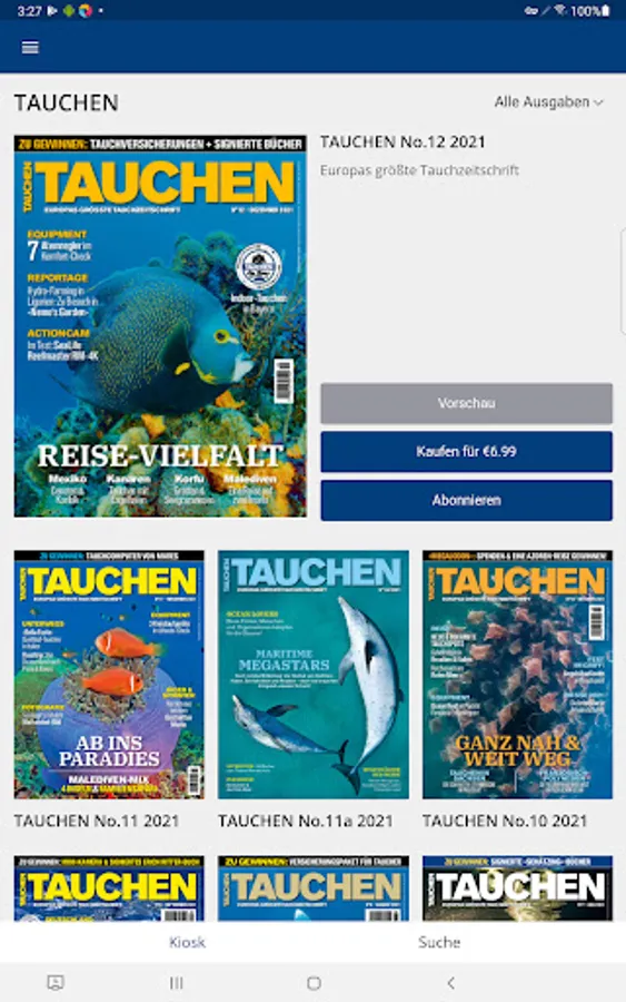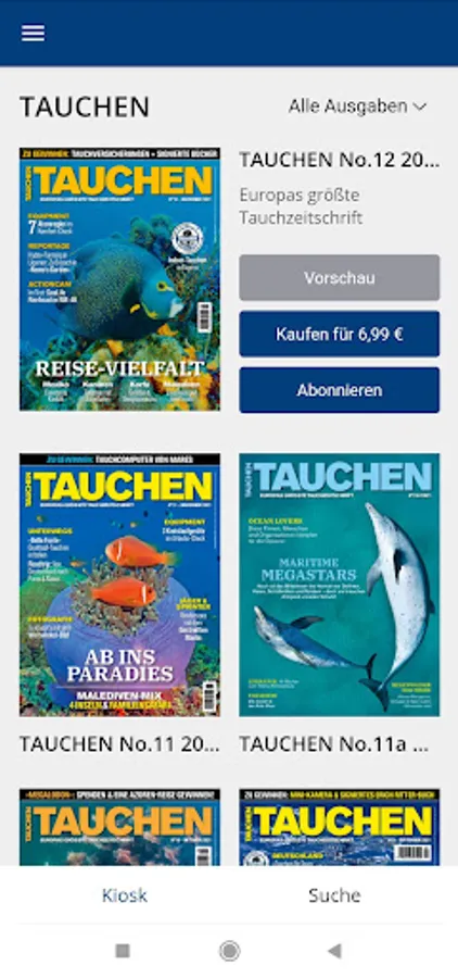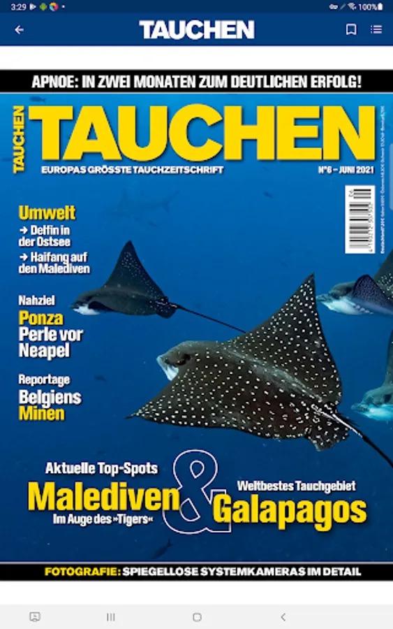 DIVING brings the world below sea level to the surface and has been since 1978! The magazine is one of the leading diving magazines on the European market and, with 280,000 readers (AWA 2017, frequency of 6), is the diving magazine with the widest reach in Germany.TAUCHEN is an opinion leader for everyone who is enthusiastic about diving. It always shows new facets of the fascinating underwater world and offers practical tips for beginners and professionals.