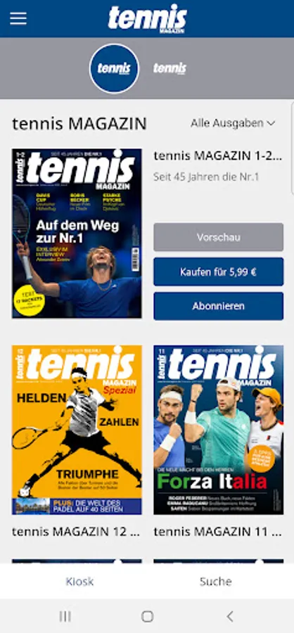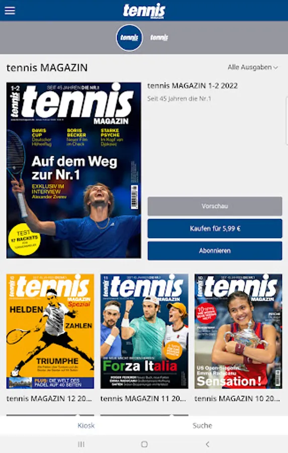 tennis MAGAZIN is the market leader for ambitious hobby players and fans of the professional tour. In addition to exciting reports on major tournaments and highlights from all over the world, you will find detailed portraits and interviews with the stars of the tennis scene in tennis MAGAZIN. Extensive racket tests and valuable tips and tricks from experts expand your know-how and whet your appetite for the next match.