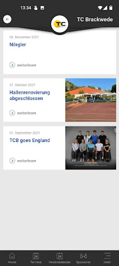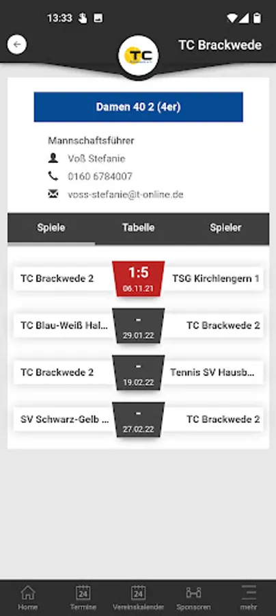 In the TC Brackwede app you can find the following information: