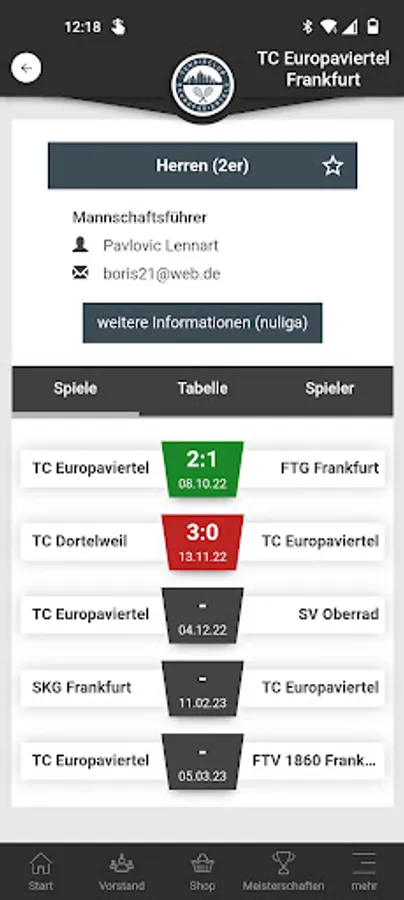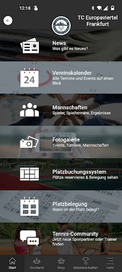 In the TC Europaviertel e.V. app you will find the following information: