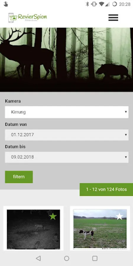 The RevierSpion picture service is the perfect complement for all GPRS game cameras. From our own experience we know that it can be quite time-consuming to open a number of emails every day, download the attachment and view and evaluate the photos individually. If you operate several radio game cameras in the area, e.g. at stalls or changes, it quickly becomes complicated and confusing. Not with our picture service! Our picture service shows all photos received at a glance, with all important details such as location, date and time.