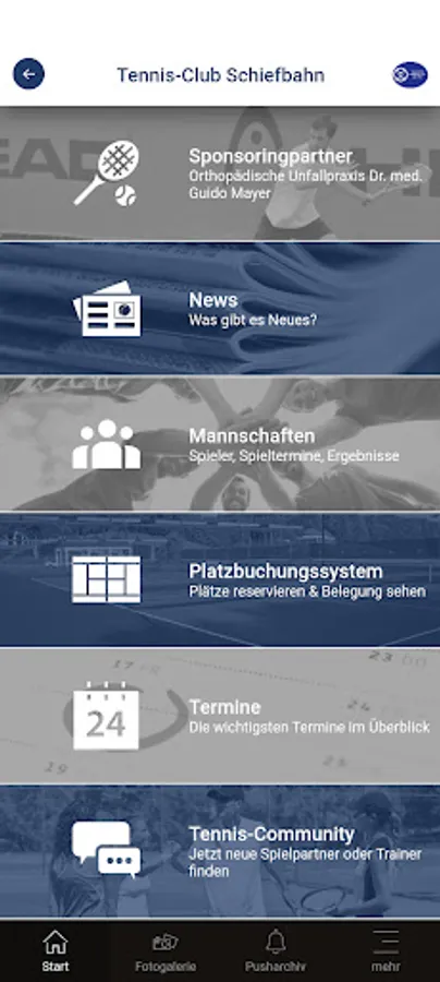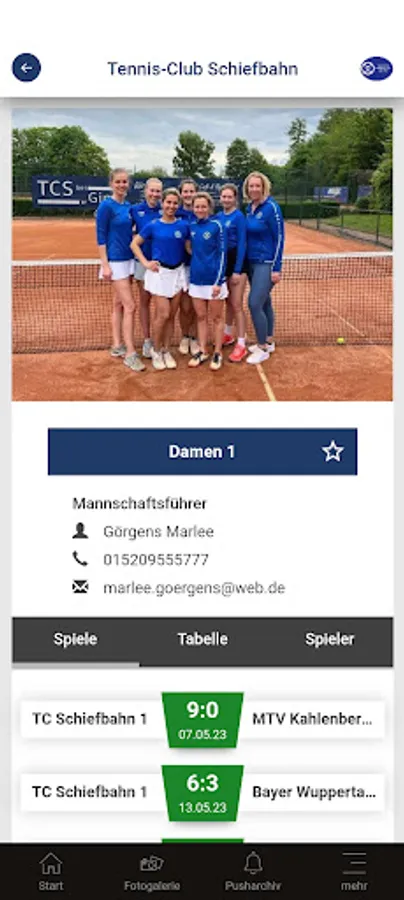 In the Tennis-Club Schiefbahn app you will find the following information: