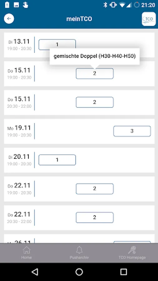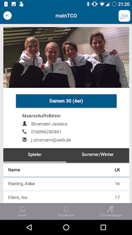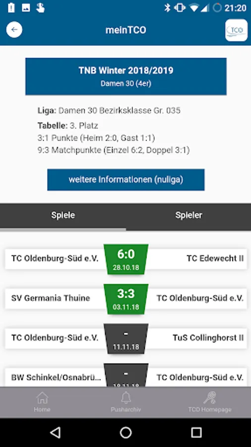 In the TC Oldenburg-Süd app you can find the following information: