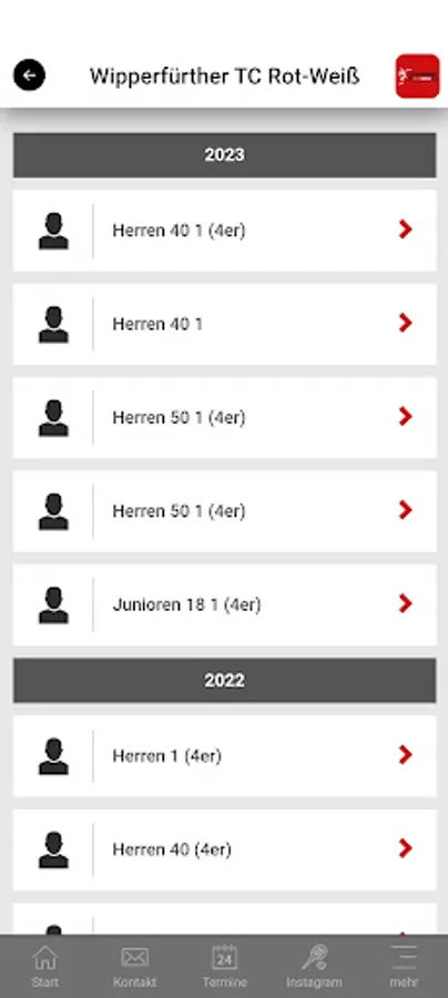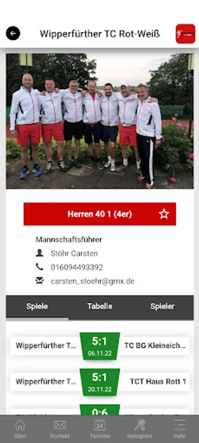 In the Wipperfürther TC Rot-Weiss App you will find the following information: