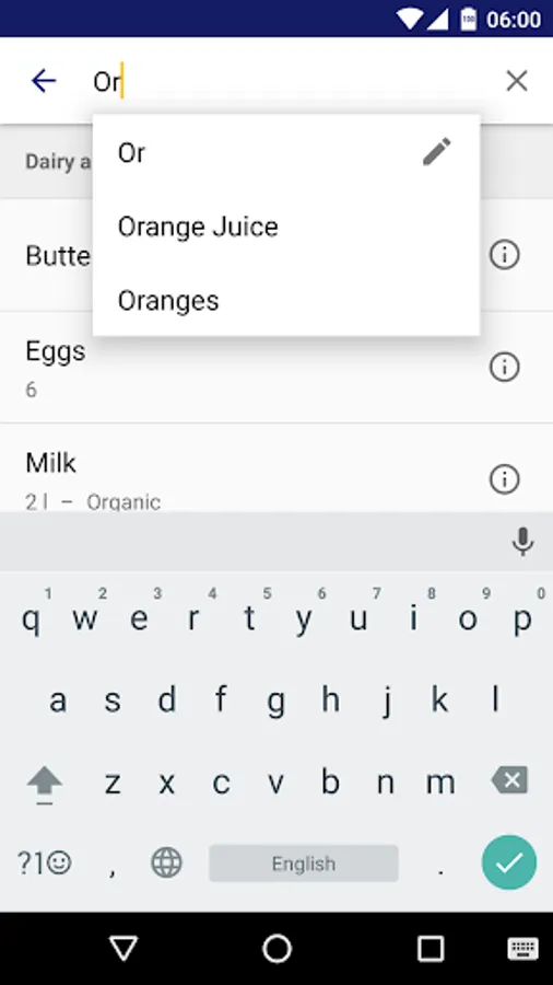 • Basket knows a lot of common items by default, but you can also add new ones easily.