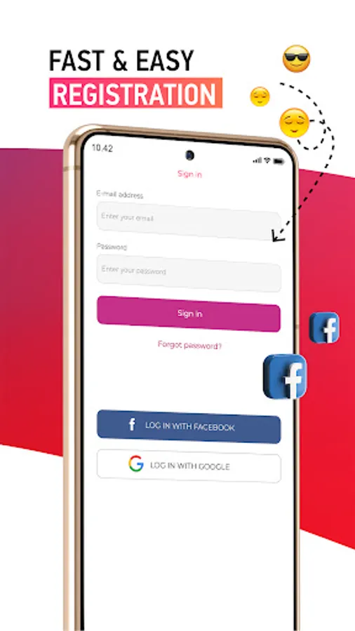— Quick and easy registration via email or social networks;
