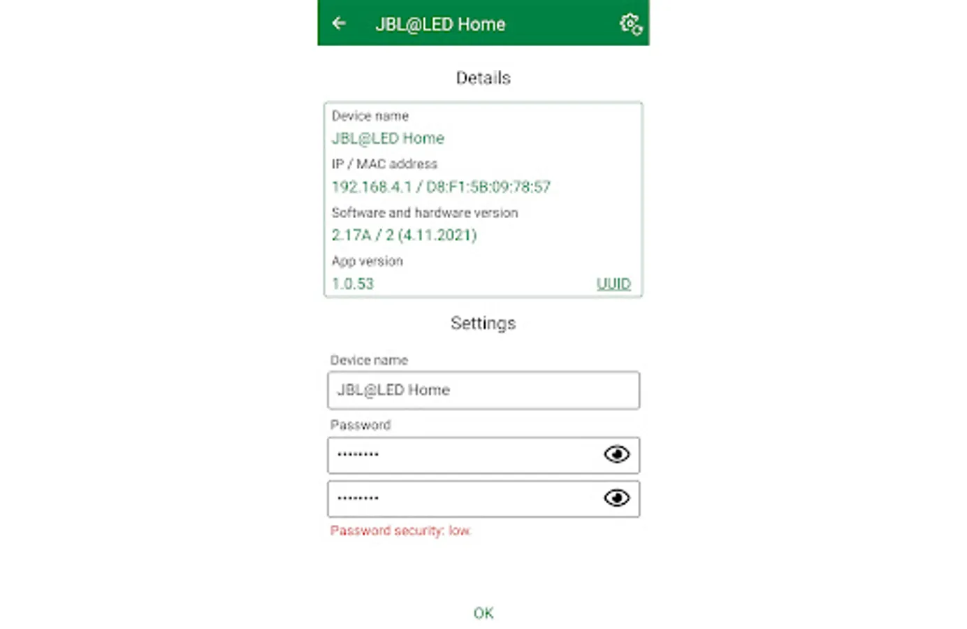 The app can be used in conjunction with the JBL LED SOLAR Control and the JBL LED SOLAR NATURE. A JBL LED SOLAR EFFECT with coloured LEDs is needed in addition to the JBL LED SOLAR NATURE for colour effects such as moonlight, sunrise and sunset.