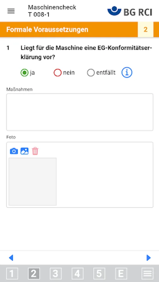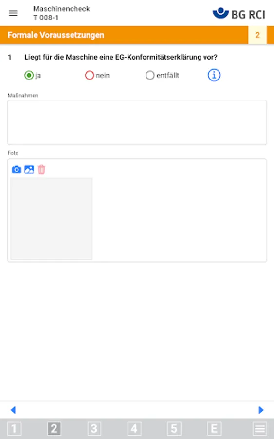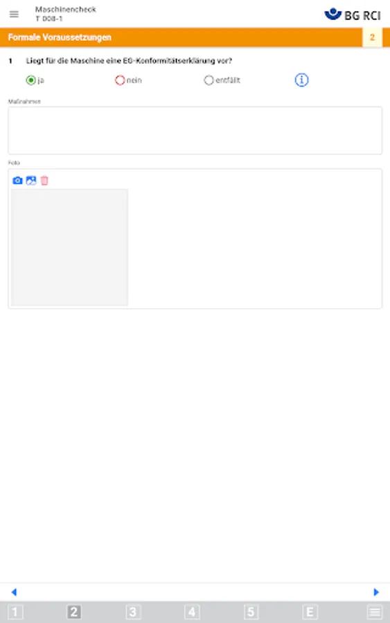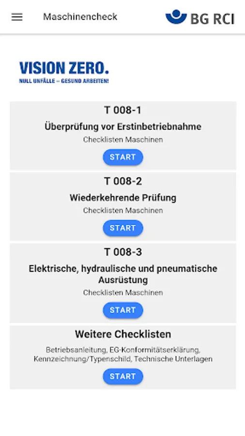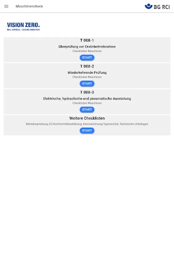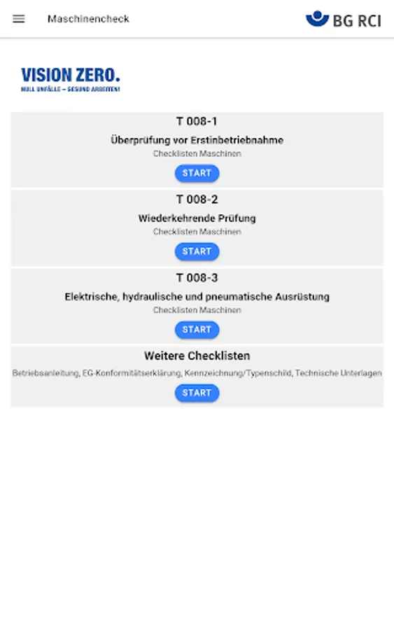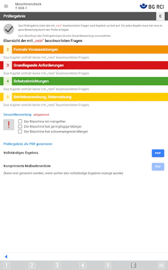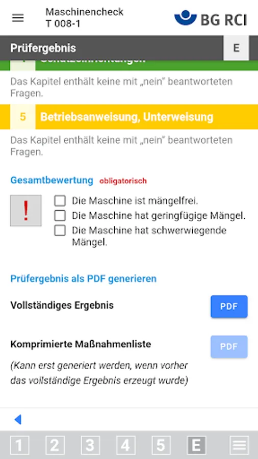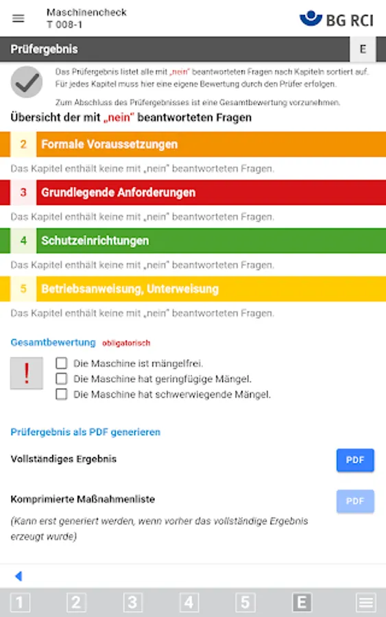 The report of the results of the check can be used as a supporting document for your risk assessment. The entrepreneur can also use this app to carry out the prescribed test before using it for the first time (Section 3 (1) of the BetrSichV). We recommend using the check with this app as a contractual component for the transfer from the manufacturer to the operator.