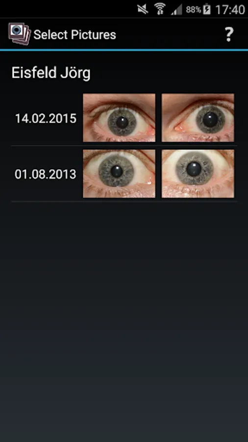 - the display of two iris photos in parallel (with full support of individual resizing).