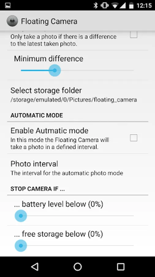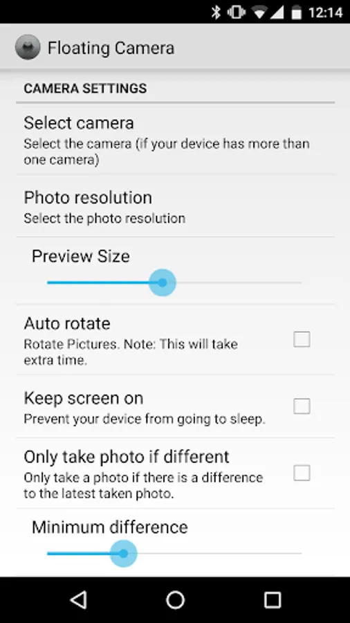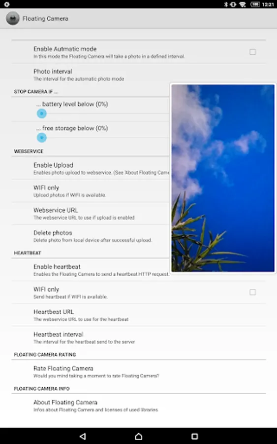 - You can configure floating Camera to take a photo only if something on the picture has changed