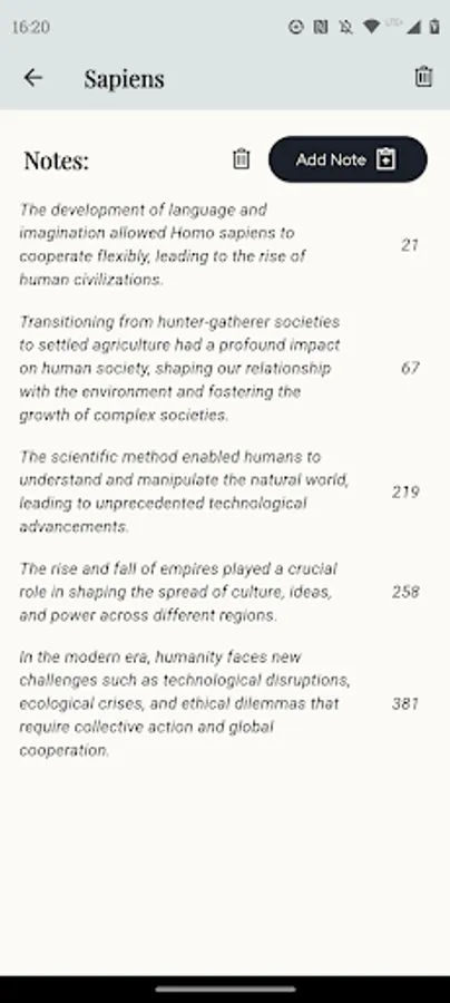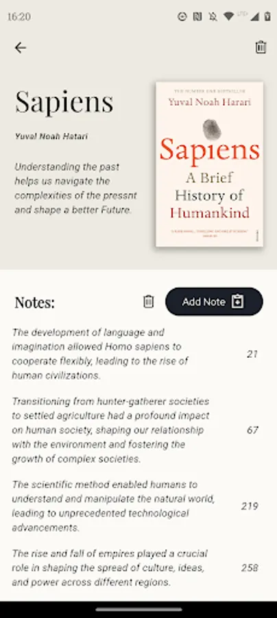 1. Note Taking: Capture your thoughts, insights, and favorite quotes while reading. Write summarys for each book, and comprehensive notes for specific pages to ensure you never forget important details.